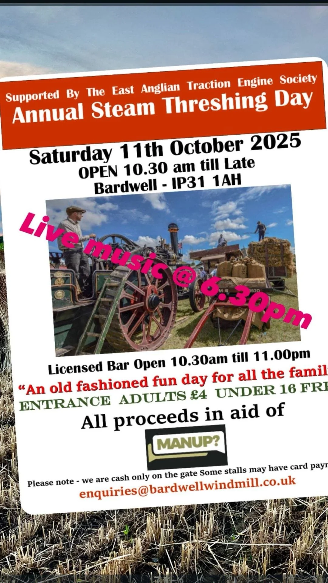 This year’s Steam Threshing Day is supporting MANUP?, the only men’s mental health charity using fundraising money to pay for proper support and national research.